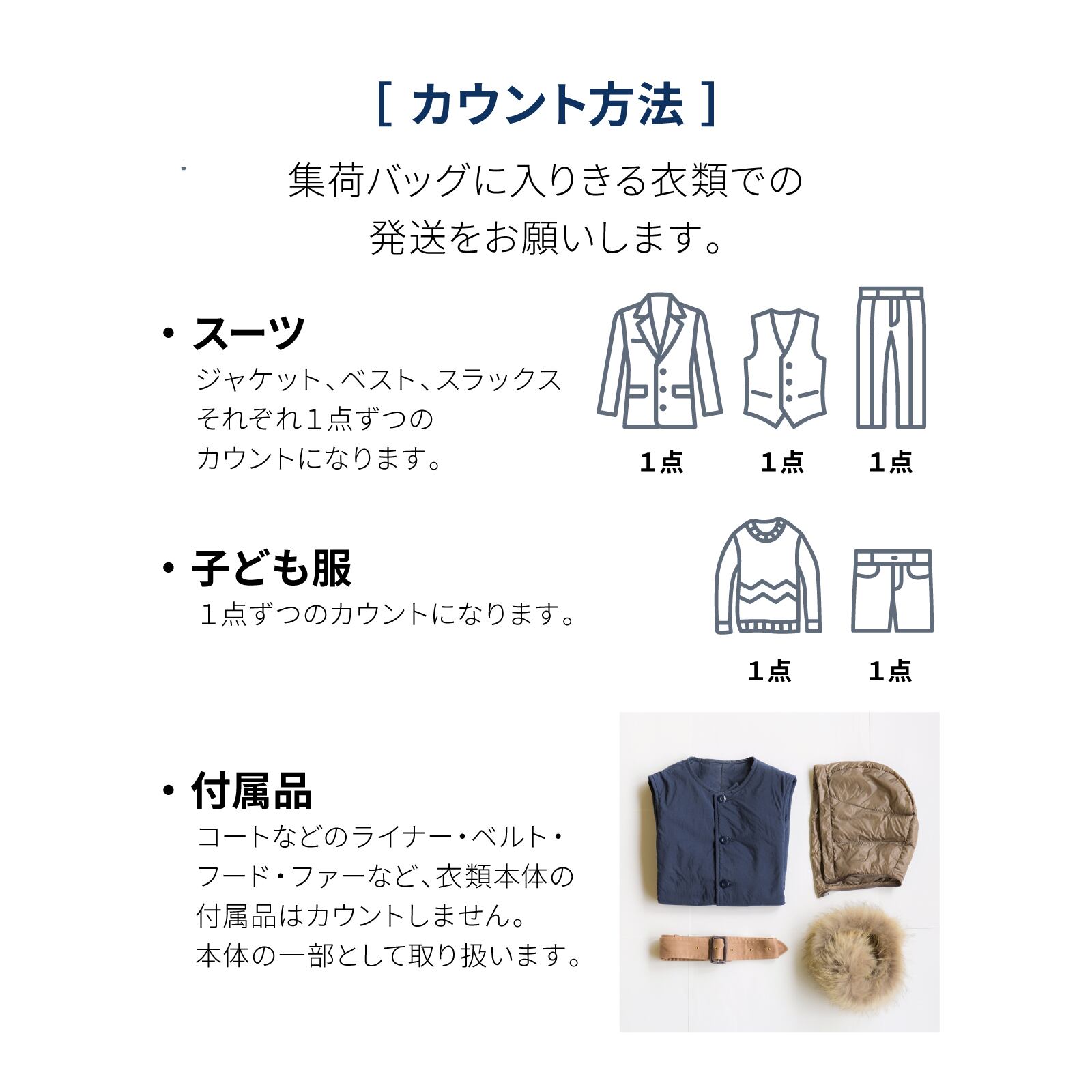 ・本プランは原則、集荷バッグ単位での管理となります。集荷バッグに入りきる衣類での発送をお願いしております。(プラン点数未満でも返金はしておりません)